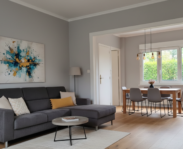 La maison propose une organisation simple et fonctionnelle. La pièce de vie se compose de deux volumes reliés par une large ouverture, permettant de distinguer facilement salon et salle à manger. La luminosité est renforcée par une large ouverture sur l’extérieur. Les finitions laissent de la latitude pour une modernisation selon vos goûts.